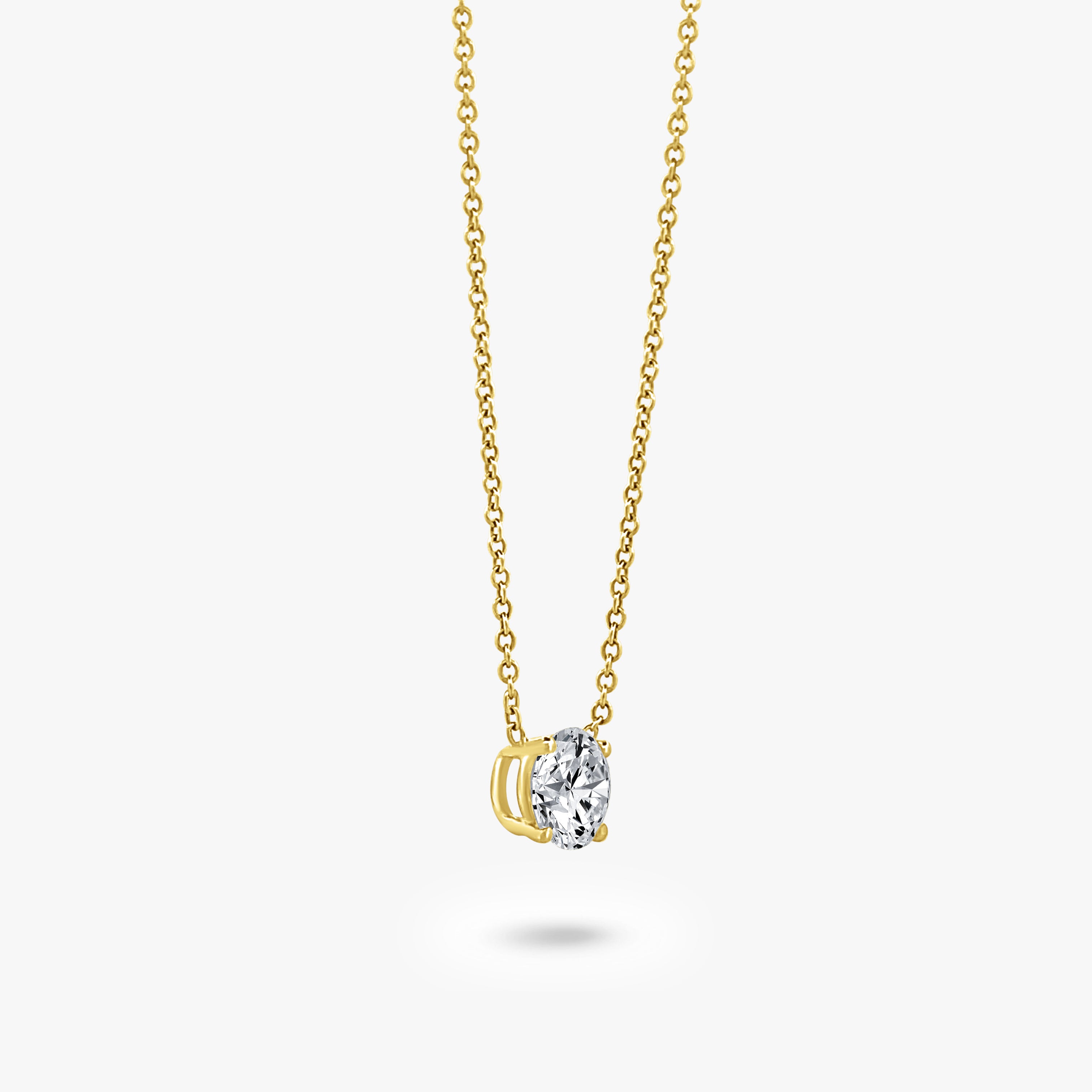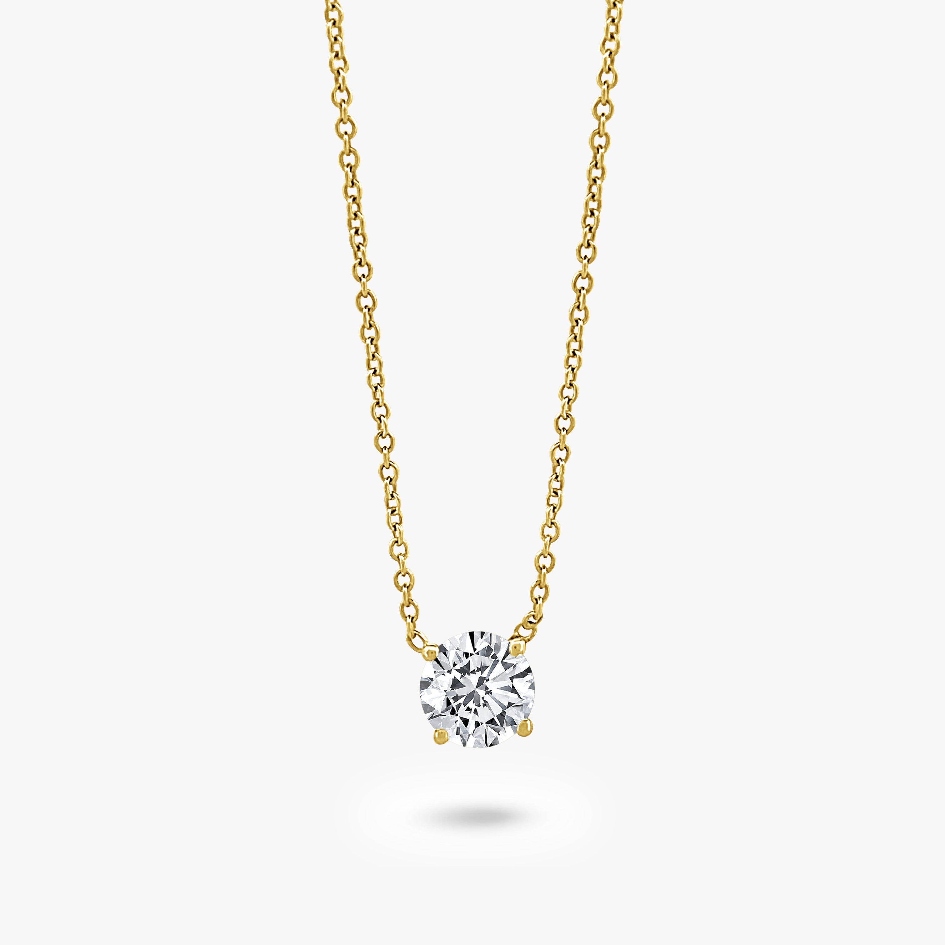 Add a touch of elegance to any outfit with this stunning Round Brilliant Solitaire Necklace. This necklace features a single, expertly cut lab-grown diamond in a round brilliant shape, providing maximum sparkle and brilliance. The diamond is set in a classic and timeless design that will never go out of style. The pendant comes with an adjustable chain that can be worn at lengths of 16-18 inches, making it versatile and perfect for layering with other necklaces. This Round Brilliant Solitaire Necklace is the perfect addition to any jewelry collection and is sure to become a favorite.